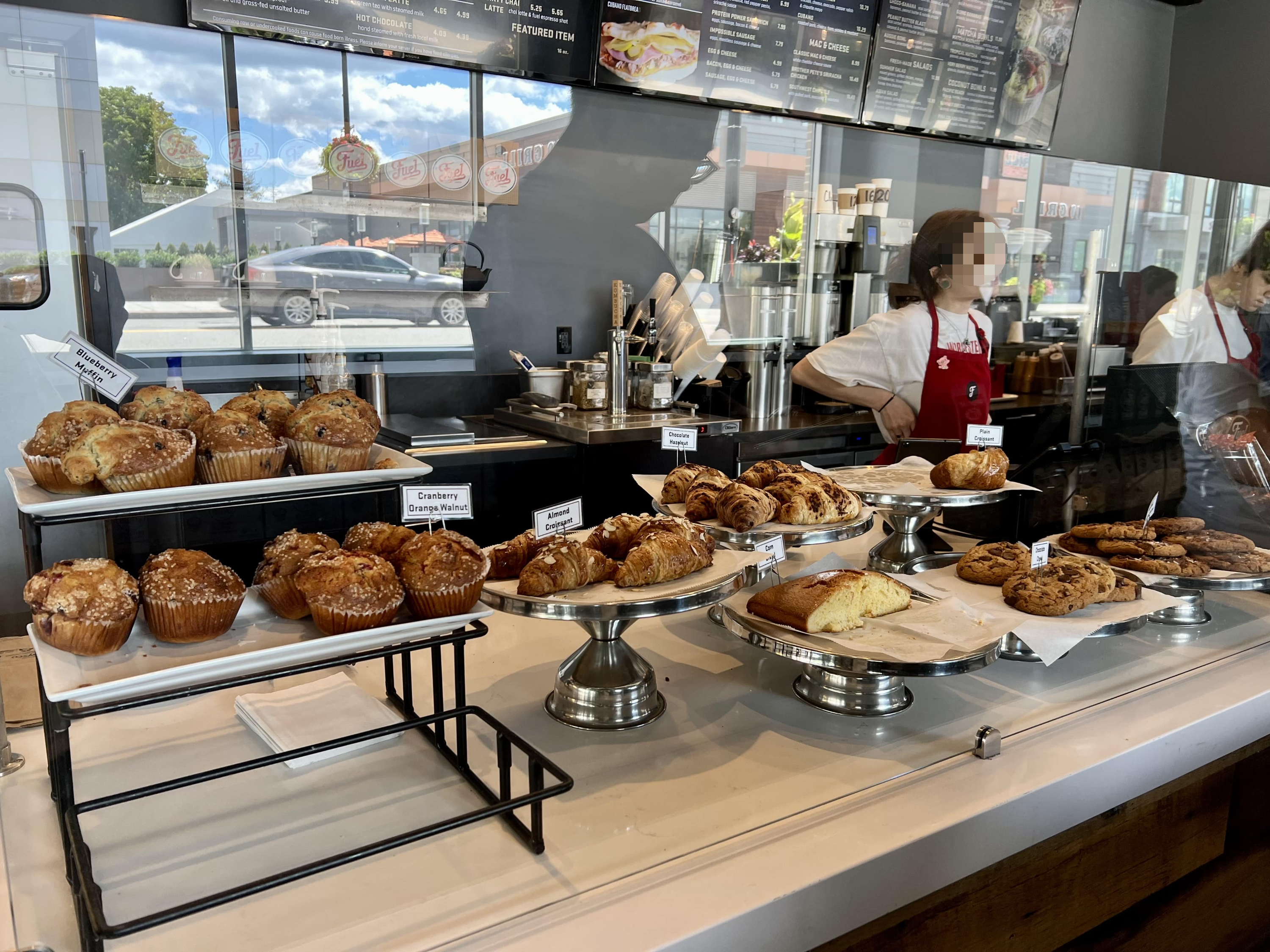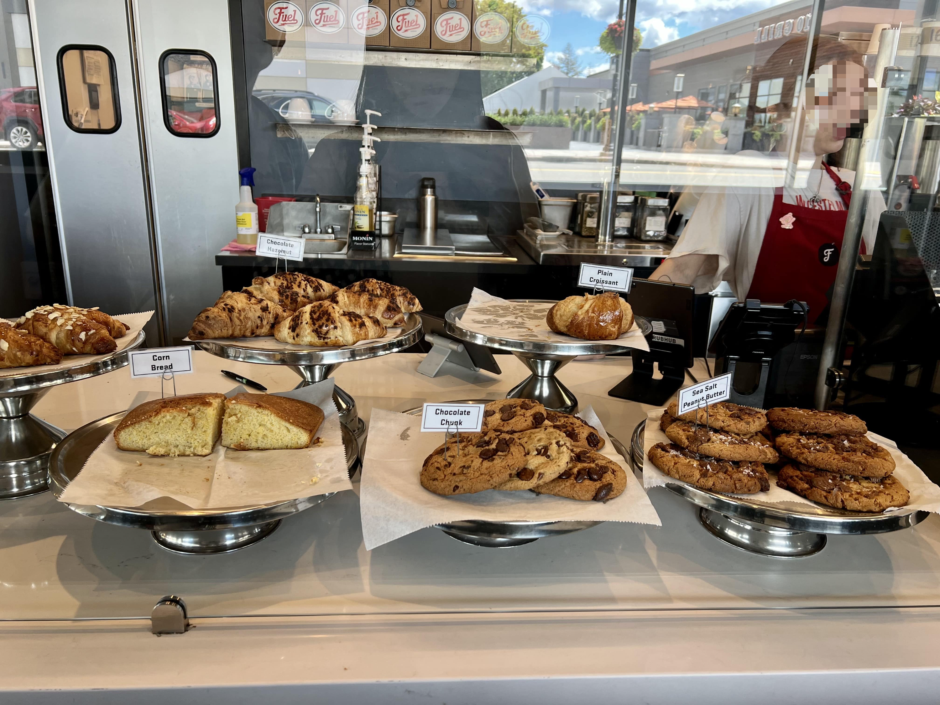 머핀/크루아상/콘브레드/쿠키류 준비되어 있어요.