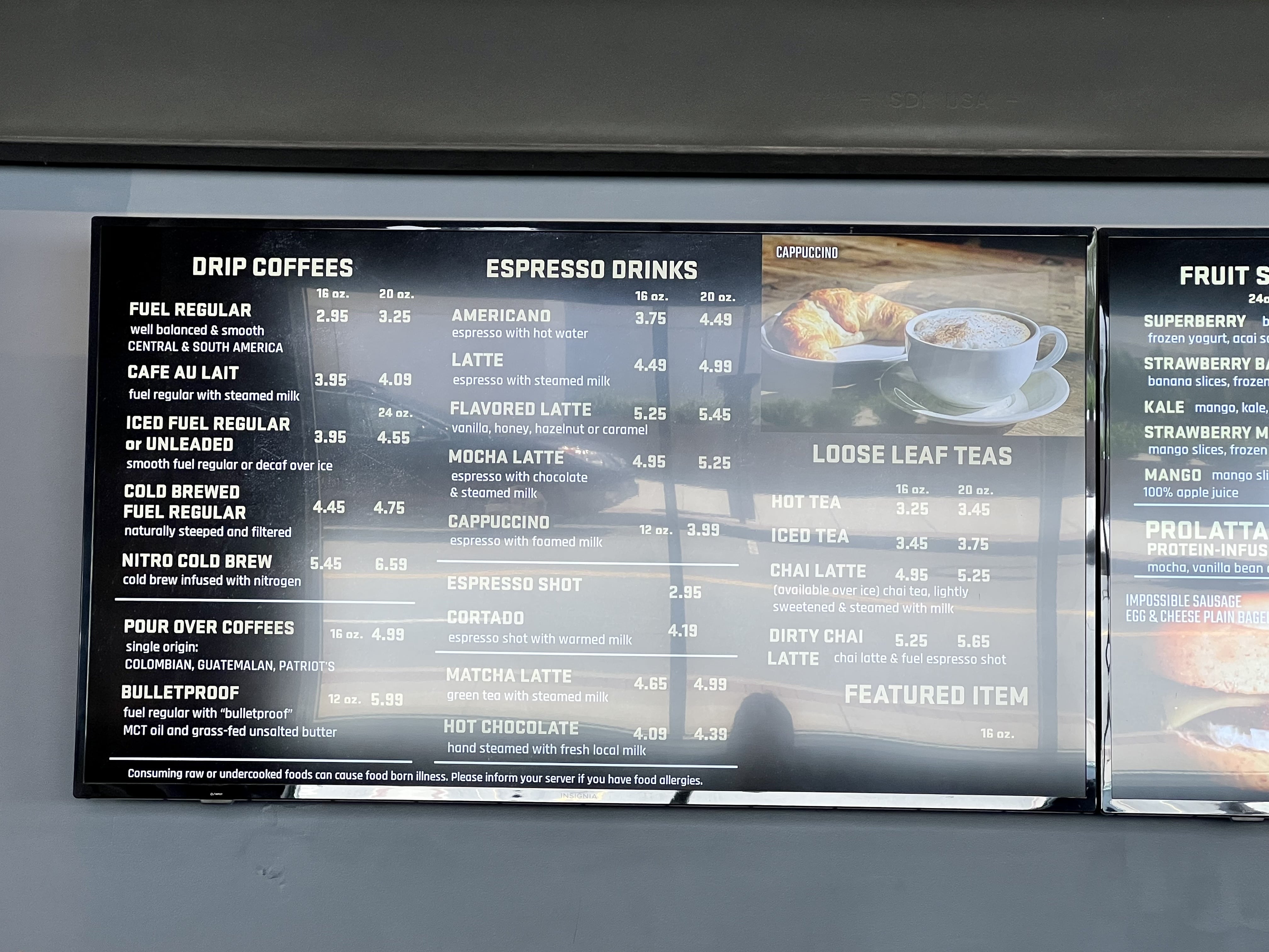 퓨얼 아메리카에는 기본적으로 커피 메뉴 (드립, 에스프레소)가 있고요,
