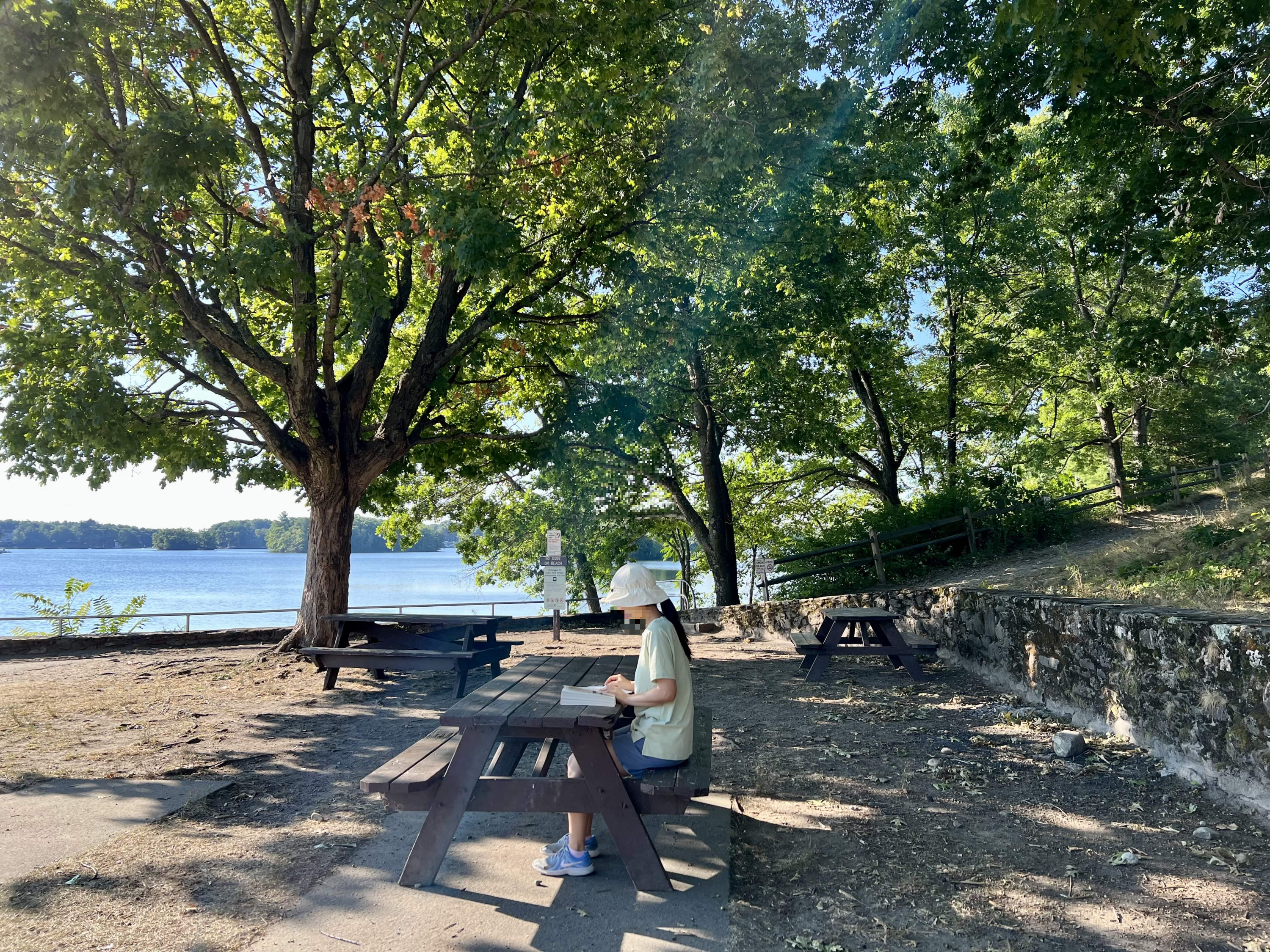 오늘 아침부터 해가 쨍쨍해가지고 집 근처 공원인 Quinsigamond state park 다녀왔어요.