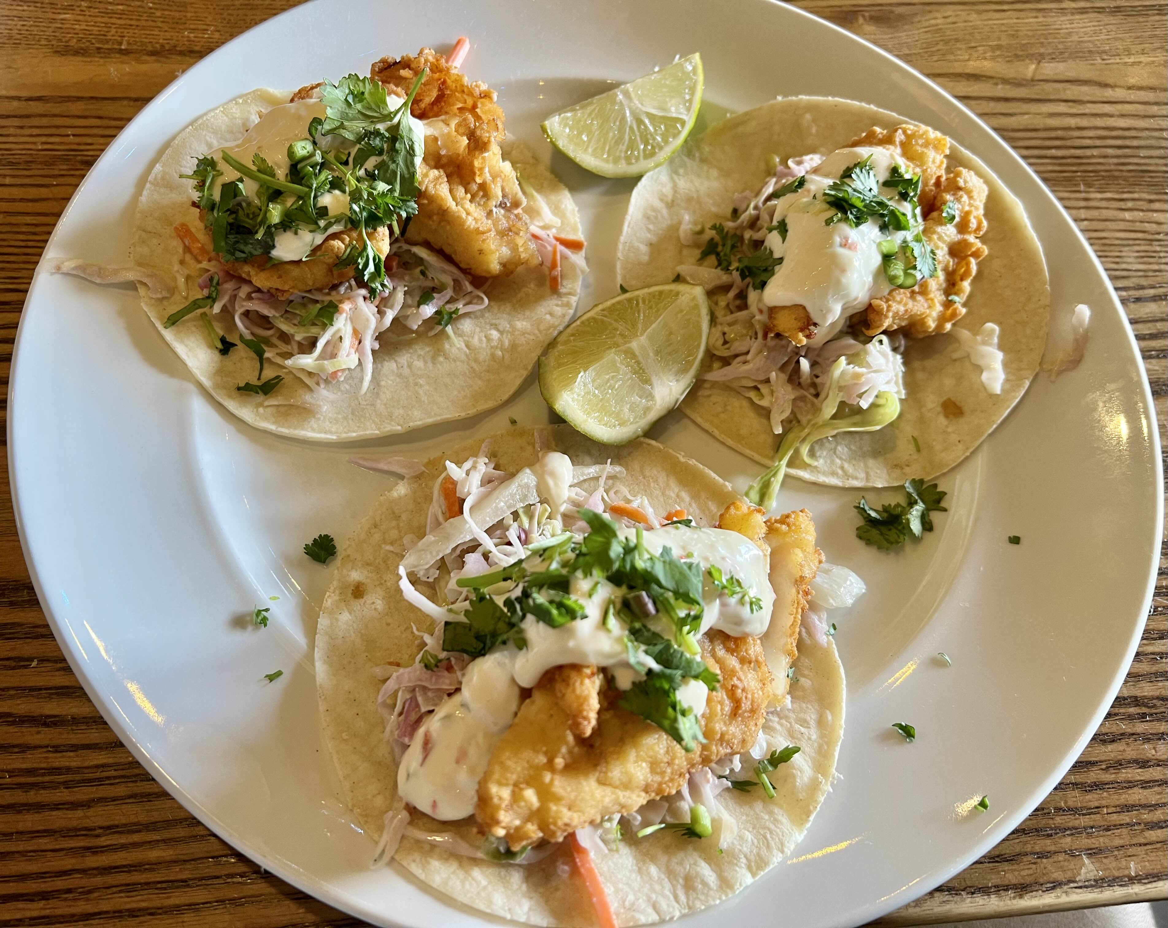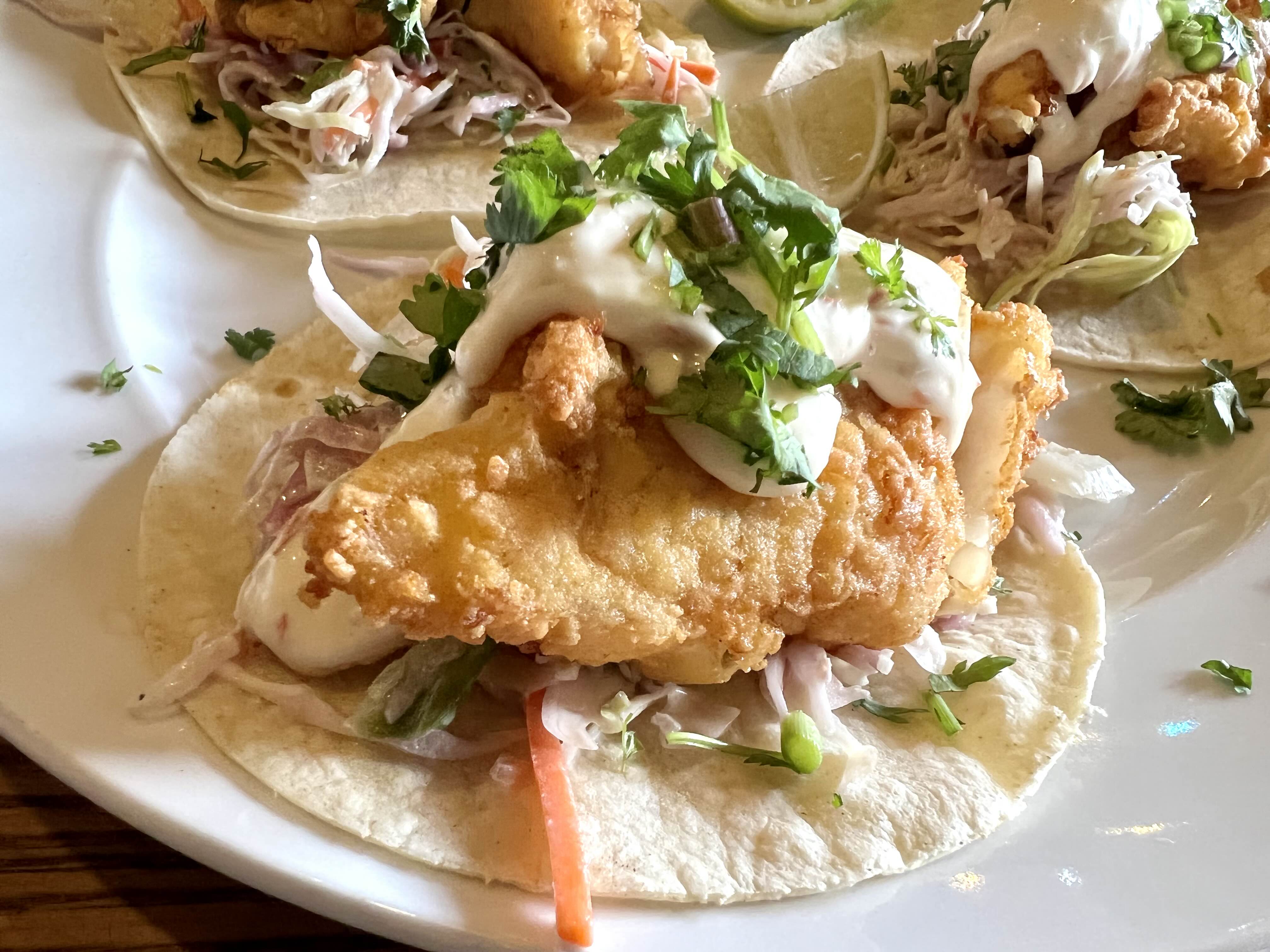 여기에는 Haddock 튀김과 하바네로 슬로 (약간 코울슬로 같은 느낌), 레몬 타르타르소스, 고수가 들어가 있습니다.