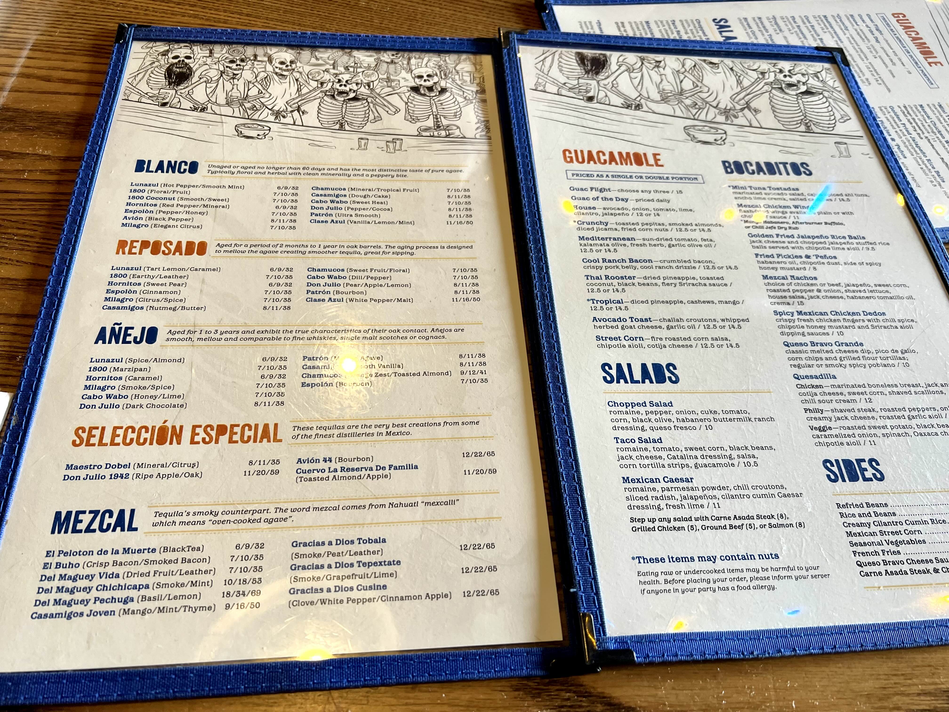 음식은 과카몰리, 샐러드, 타코, 화이타 등 있었습니다.
