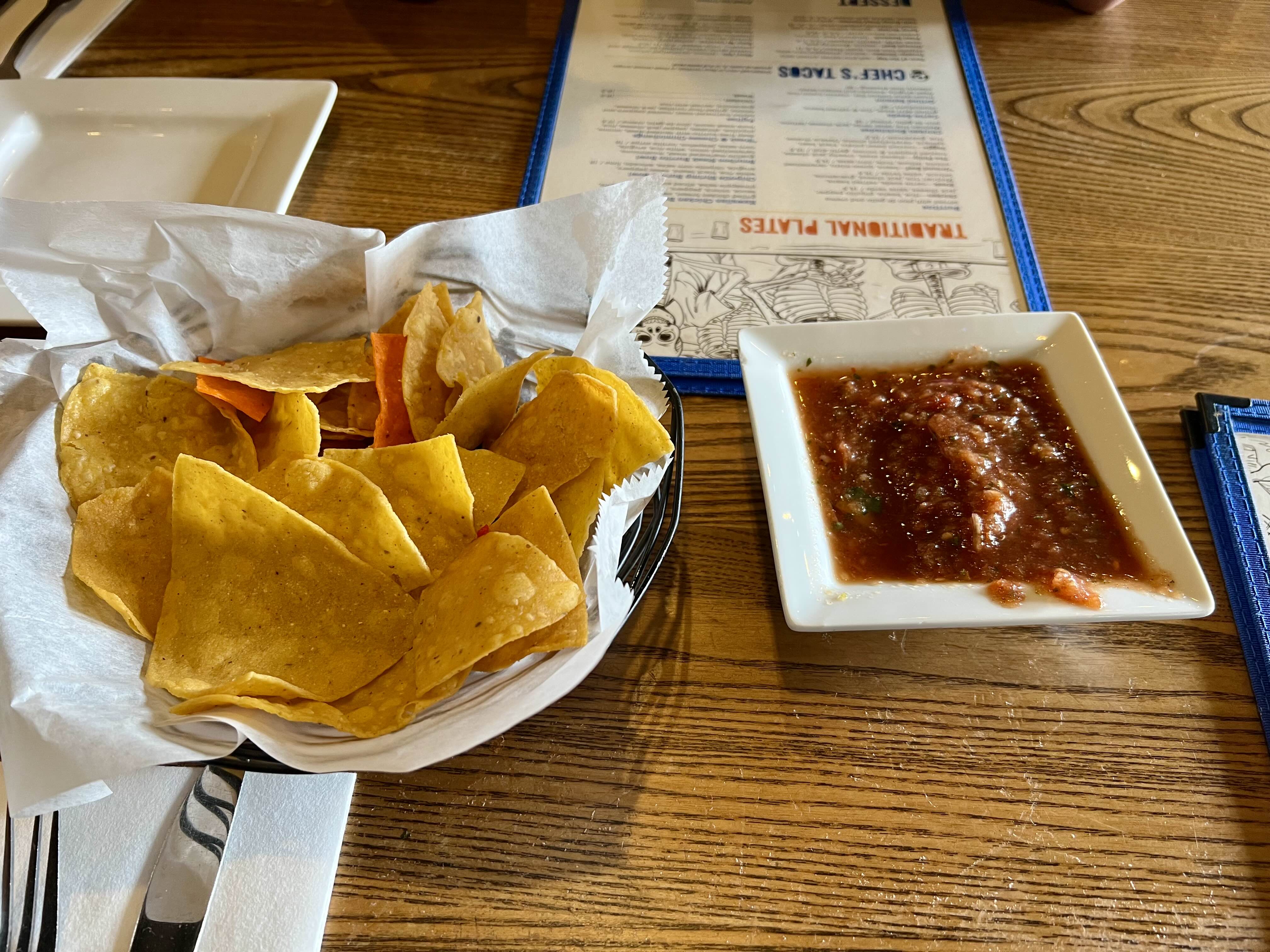 이 음식점의 특장점은 음식을 시키고 나면 또띠아 칩과 살사가 무제한으로 제공된다는 것이에요