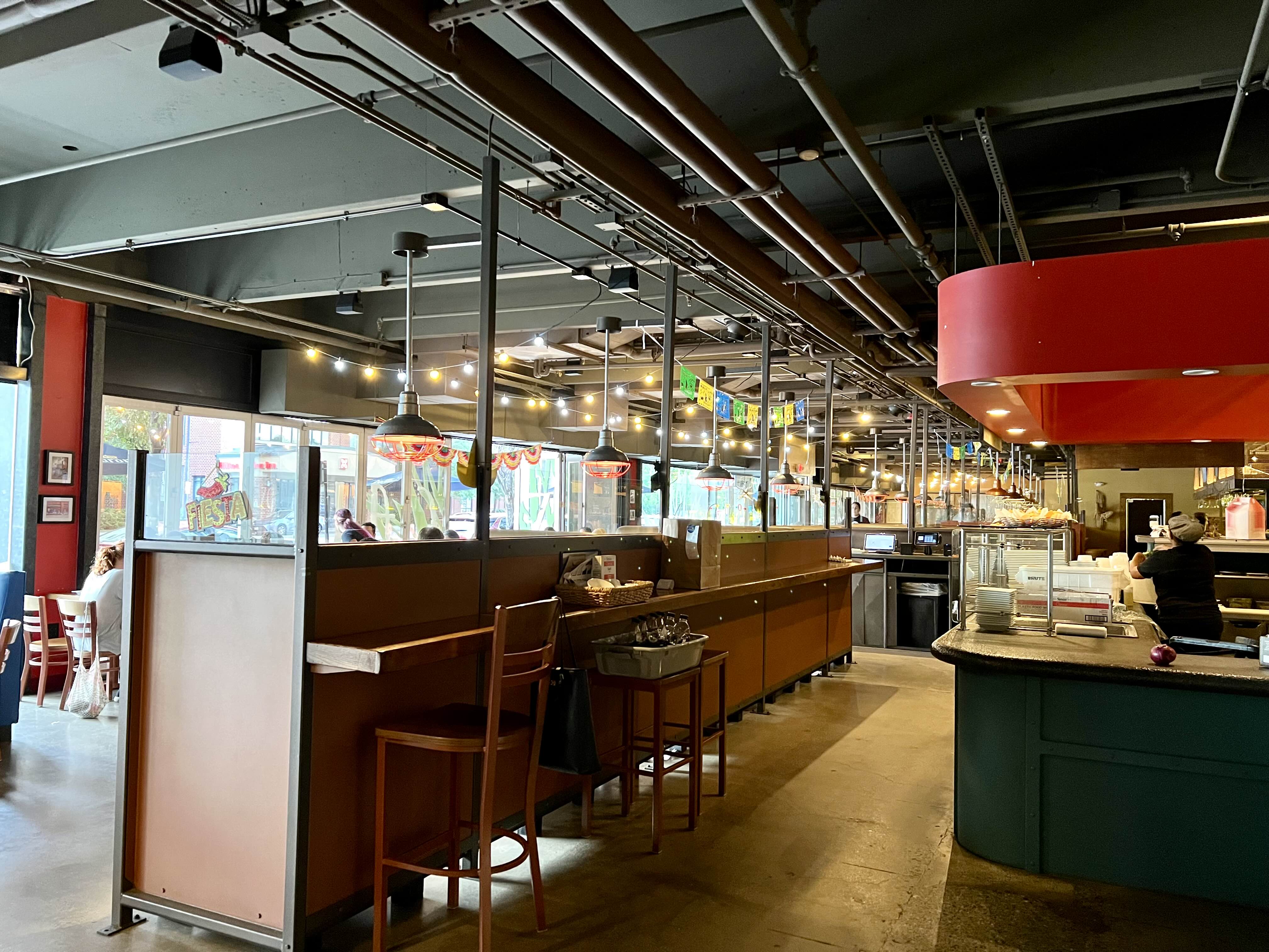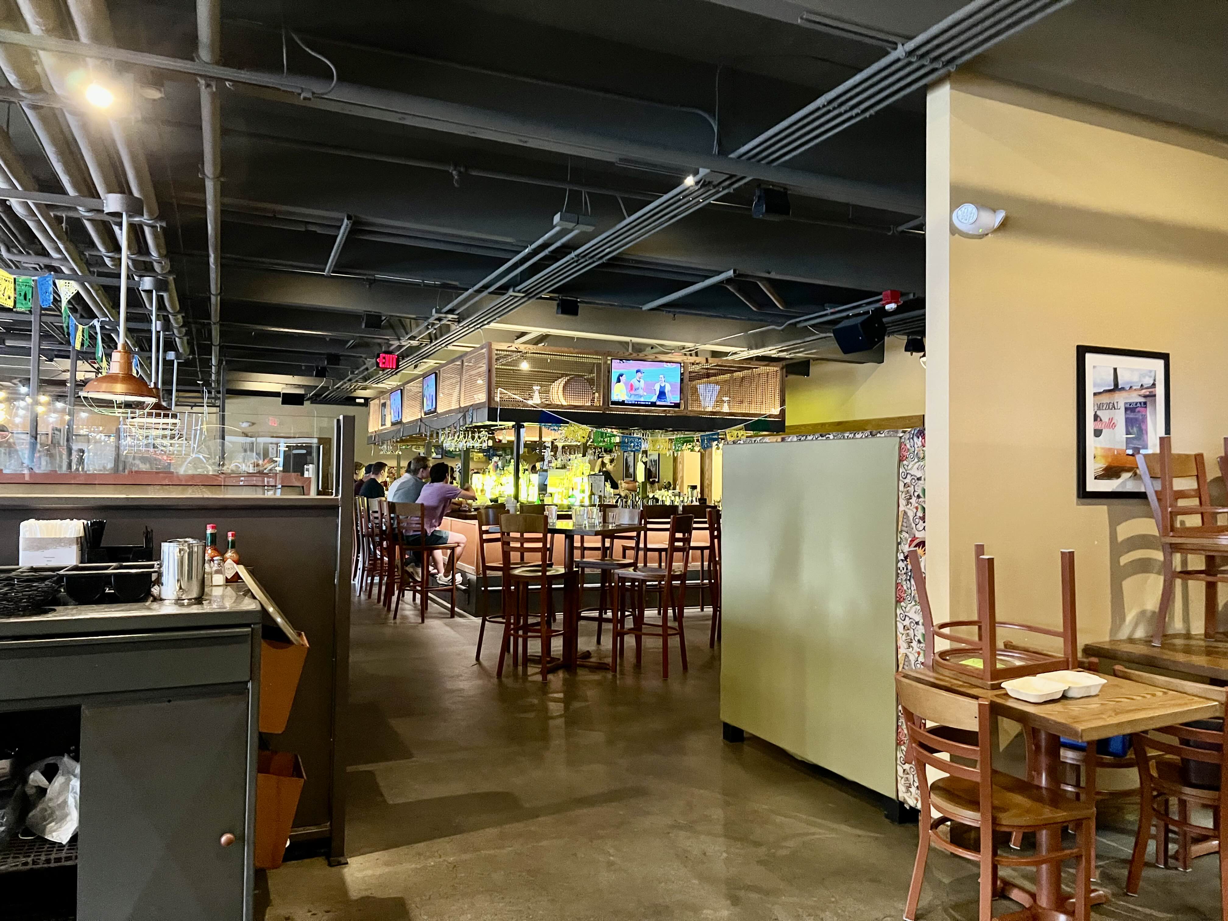 다른 한쪽에는 또띠아 칩과 살사를 만드는 카운터, 그리고 바 (bar)가 있어요.