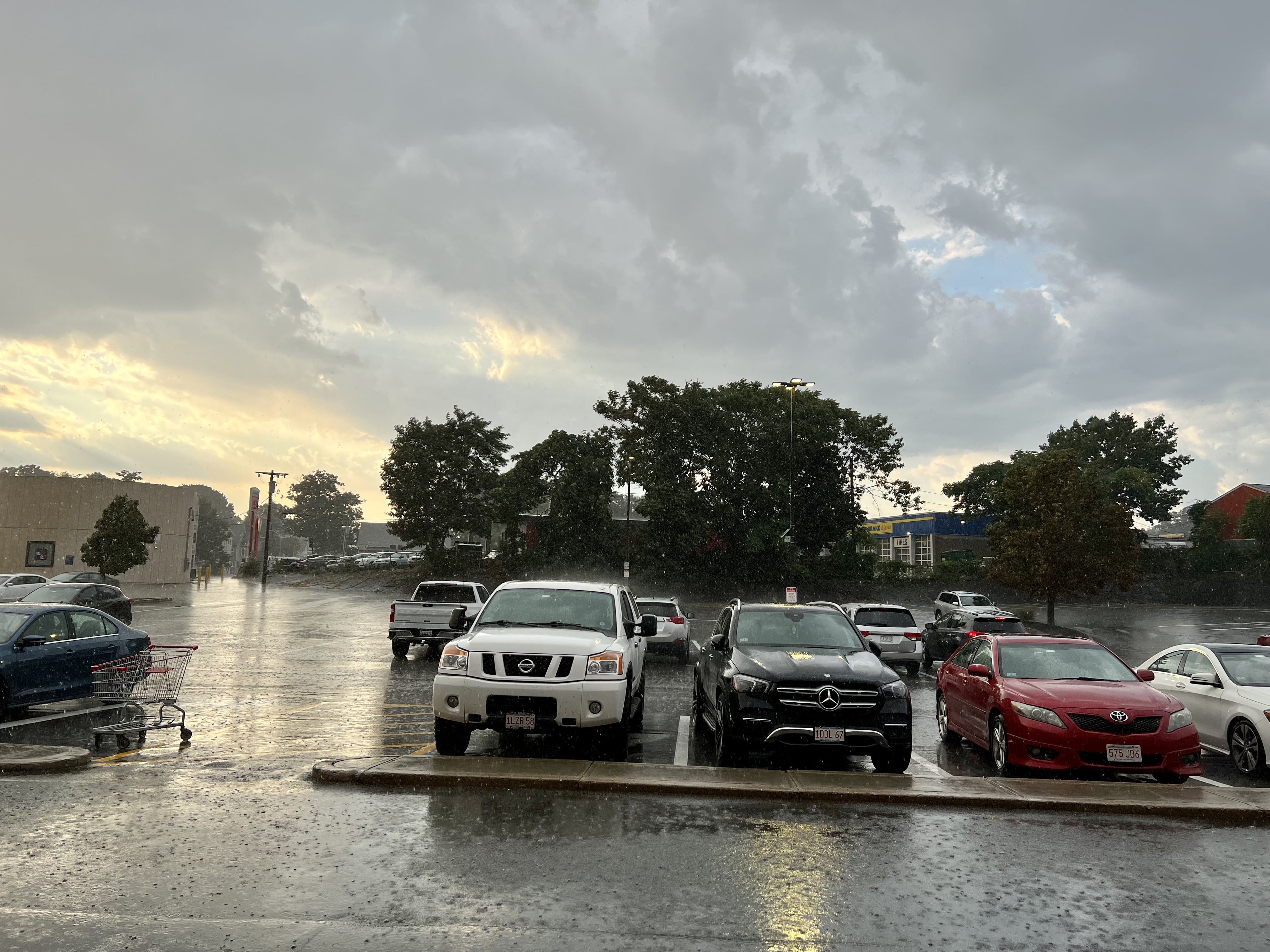 비 오는 게 사진으로는 잘 보이지 않지만 바닥에 빗방울 떨어지는 거 보세요! 진짜 많이 왔어요.