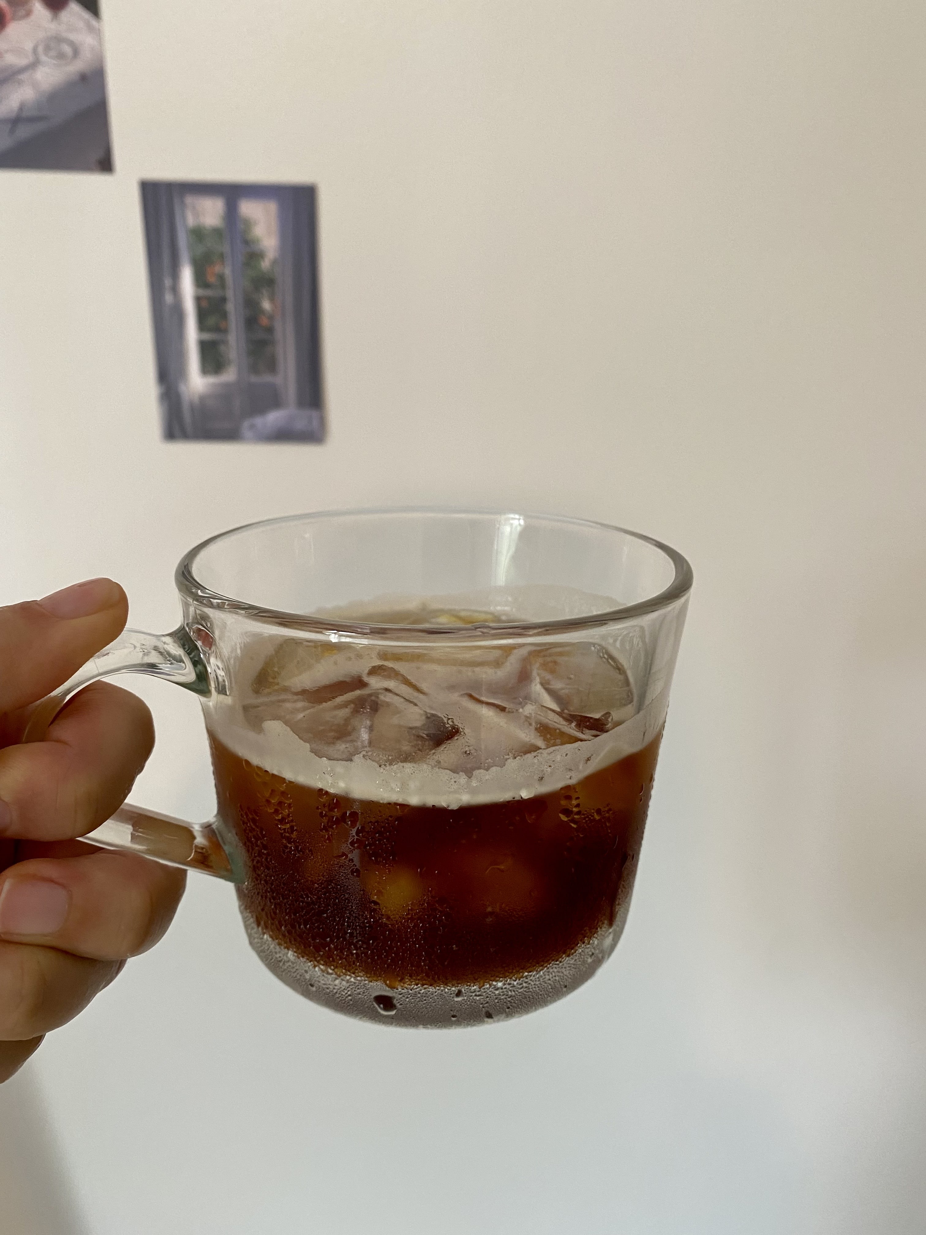 최근에 아이스커피용으로 산 컵에도 아아 한잔 타봤어요!