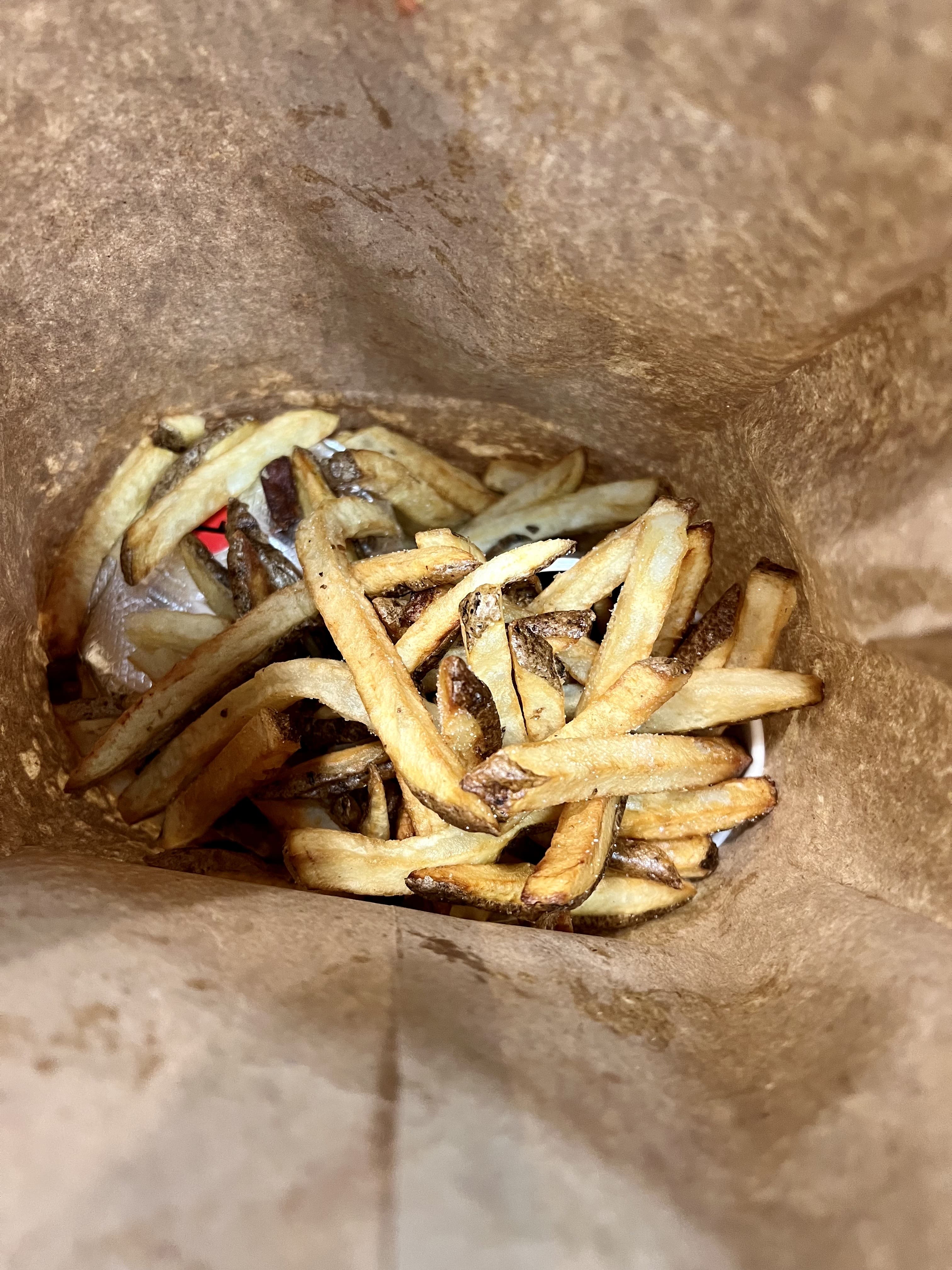 그래서 햄버거 받고 봉지 안을 보면 이렇게 감자튀김이 수북하게 쌓여있어요ㅎㅎ