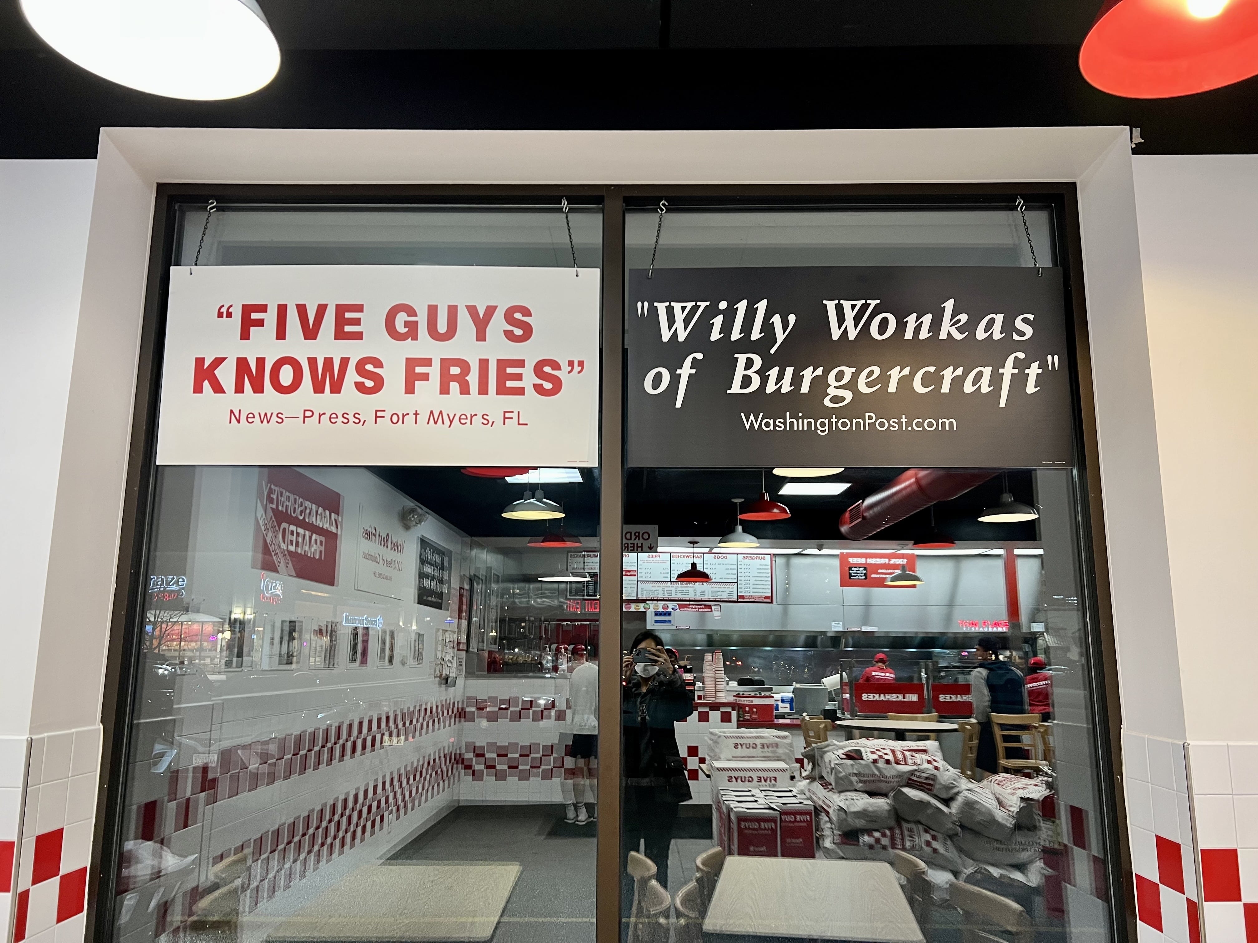 이곳이 좀 더 특별한 이유는 In-N-Out Burger가 서부에서만 먹을 수 있는 햄버거 맛집인 것 같이, Five Guys는 중, 동부에서 먹을 수 있는 햄버거 맛집이기 때문이에요.